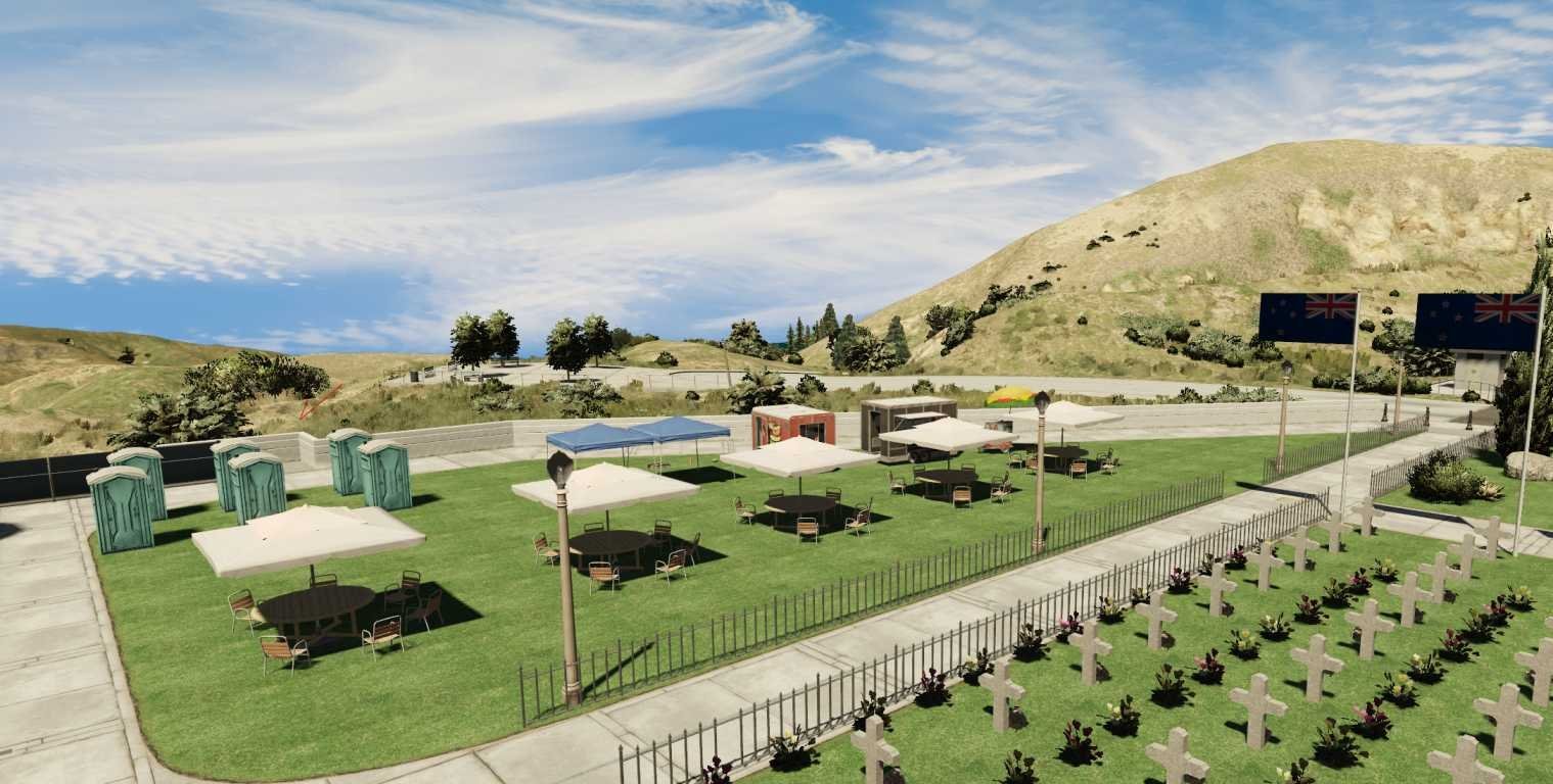 The Vinewood Hills ANZAC Wreath Ceremony MLO in FiveM pays tribute to the bravery and sacrifice of soldiers in a serene and dignified setting. This meticulously crafted MLO provides a symbolic space for honoring fallen heroes, featuring beautifully adorned wreaths, memorial plaques, and seating areas for attendees to pay their respects.